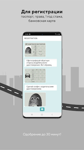 Регистрацию можно пройти через приложение со стажем менее 1 года категории В. Для этого необходимо наличие паспорта и водительского удостоверения. Так как в целях безопасности отсутствует возможность загрузки фото документов из памяти устройства, фотографии нужно будет сделать в момент регистрации, то есть документы должны быть при вас. Проверка документов и одобрение аккаунта занимают не более 30 минут.