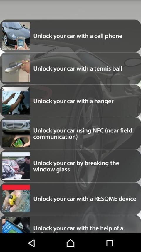 Как вы можете разблокировать ваш автомобиль с различными методами? Если вы забыли ключи в машине? У вас есть кодовый замок в машине, и ваши ключи в машине? Это приложение поможет вам, как разблокировать ваш автомобиль.