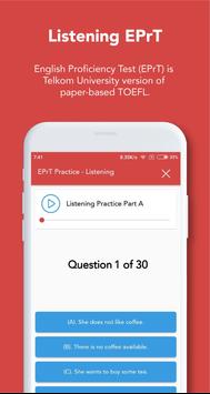In accordance with Telkom University's vision, which is to become the World-Class University, Language Center thrives to help Telkom University academia to achieve the score required prior to graduating from this university. Undergraduate programs requires students to achieve 450 in ITP TOEFL or EPrT, while Graduate and Post Graduate expect their students to achieve 477 and 500 respectively.