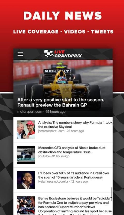 Вы готовы к сезону в этом году? Не пропустите ни одного новости или одну гонку с Live Grand Prix, в конечном итоге приложение, чтобы следовать Формулы Один новости и получить живые результаты.