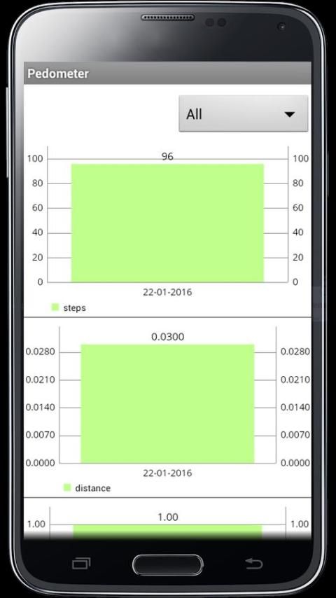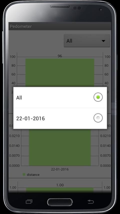 Pedometer records the number of steps you have walked and displays them along with the number of calories that you have burned, distance travelled and goal achieved in percentages. Also provide history of data in weekly, monthly or yearly list as well as providing graphical representation to display the steps per month, week or year.