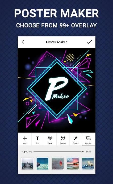 Poster Maker является простым в использовании приложения, просто выберите фон вы любите в соотношении, как в вашу потребность и добавить текст с плакатом дизайном шрифтами, добавить замечательные наклейки (специально подобранные для плакатов решений), добавить свои фотографии из галереи и создать идеальные постер каждый раз.