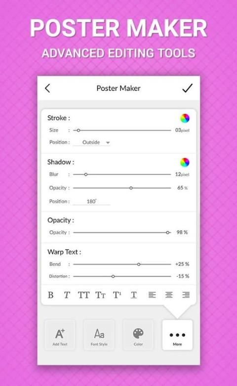 + Точная настройка вашего плаката редактирования выравнивания текста, шрифт, цвета или эффектов.