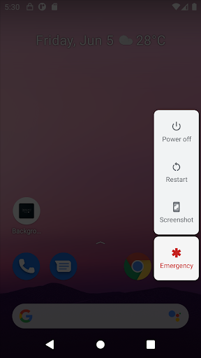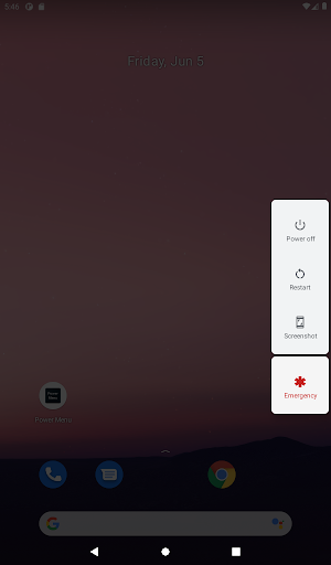 это приложение использует доступности сервисов, чтобы открыть меню питания.