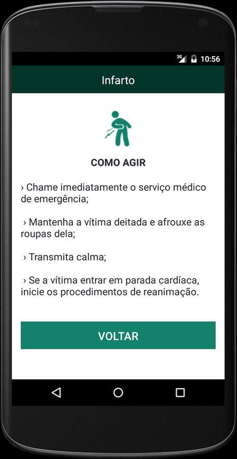 Ключ должен знать, что в чрезвычайных ситуациях, должны сохранять спокойствие и иметь в виду, что предоставление первой помощи не исключает важности врача. Кроме того, убедитесь, что есть достаточно безопасные условия для оказания помощи без риска для вас. Не стоит забывать, что провалил экстренной помощи может нанести ущерб здоровью потерпевшего даже больше, так что приложение должно давать советы и учить, что делать в различных ситуациях.