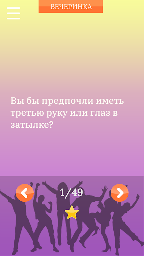 - Вечеринка. Тема содержит вопросы веселого характера, если у вас на тусовке скучно и попахивает тоской, эти вопросы разбавят обстановку, поднимут вашим друзьям и знакомым настроение, а вы займете почетное место классного заводилы! Будьте оригинальнее тех друзей кто предлагает банальные игры, вроде Крокодила и Алиаса.