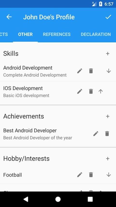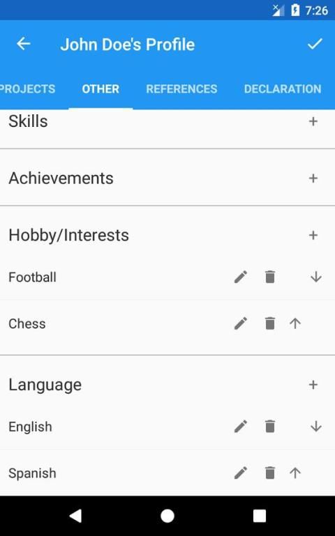 В последней версии мы добавили функциональность для изменения порядка образования квалификации, проекты, опыт работы, хобби, языки и т.д. Таким образом, вы не должны удалить их и добавить еще раз, чтобы изменить порядок.