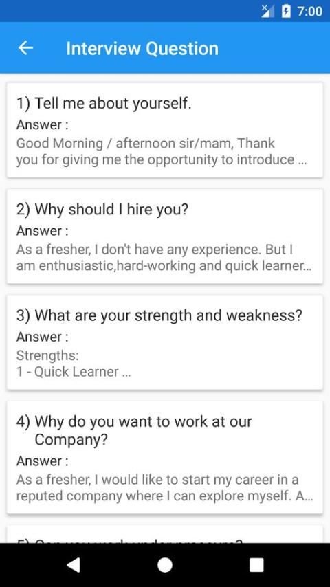 Теперь вы можете получить доступ к интервью вопросы и ответы в приложение и подготовить себя к предстоящим интервью. Мы также будем добавлять новые вопросы-ответы в наших предстоящих обновлениях.