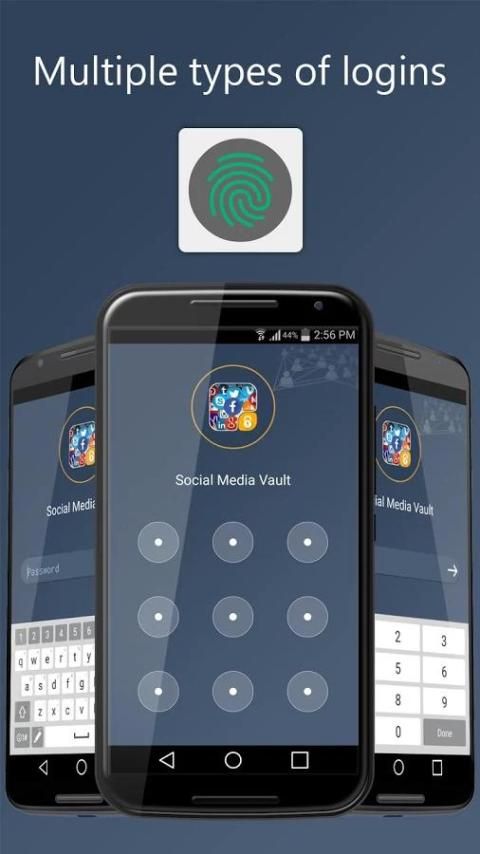 "Social Media Vault" позволяет использовать несколько аккаунтов в социальных сетях, с помощью всего одного приложения. Благодаря защищенный паролем интерфейс, вам не придется беспокоиться о других хакерских на свой счет. Использование панели мониторинга социальных медиа это приложение, вы можете безбоязненно доступ к Facebook, Twitter, Instagram, и другие социальные приложения. Кроме того, приложение имеет множество вторичных функций безопасности, которые хранят ваши учетные записи социальных сетей, скрытых от других. Social Media Vault спасает вас от загрузки отдельных приложений социальных медиа. Это позволяет получить доступ ко всем счетам в