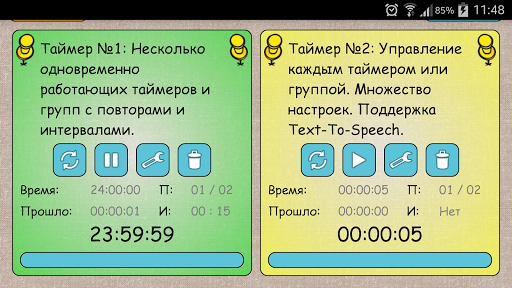 Занимаетесь спортом? Готовите на кухне? Или Вам просто необходимо выполнить какие-либо действия по прошествии заданного времени? Вам необходимо заранее сохранить несколько таймеров для последующего использования? Или организовать группу таймеров? Тогда вам просто необходимо иметь данный таймер обратного отсчета времени * на своем смартфоне или планшете.