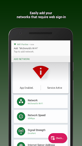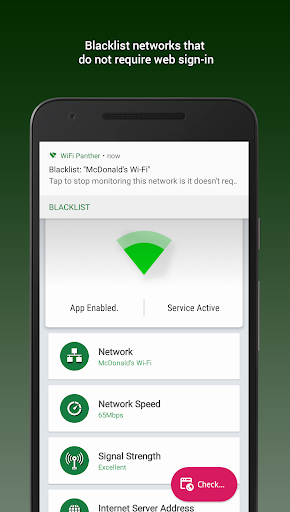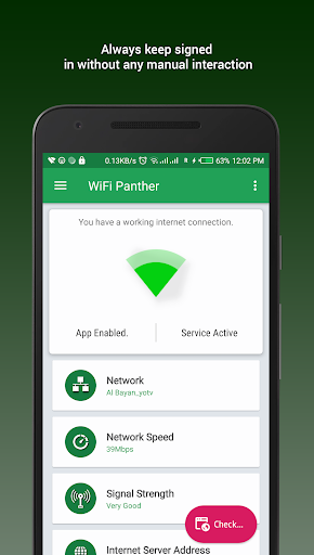 WiFi Panther is an intelligent app that automatically signs you into any WiFi network (captive portal) without any manual interaction from you. You never fill those annoying web sign-in forms to access again!