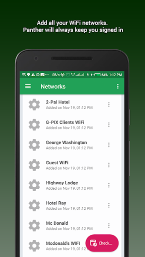 All you have to do is add your WiFi network once and WiFi Panther will always sign you in automatically!