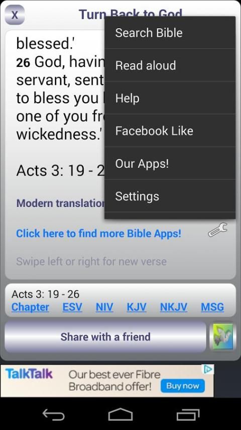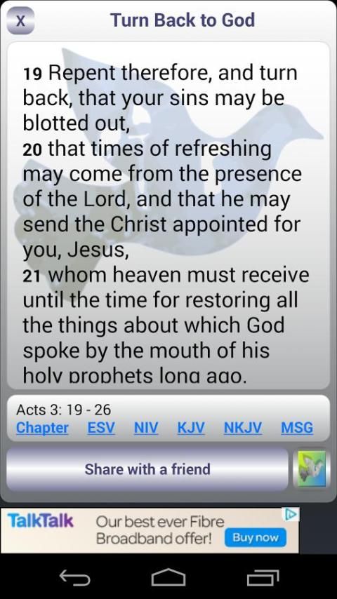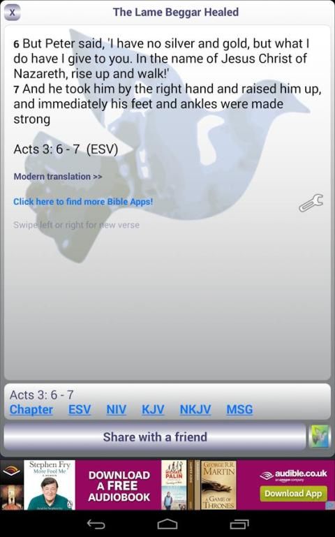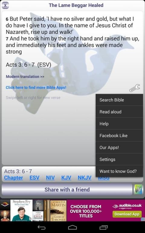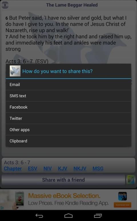 Приложение также позволяет обмениваться Писание с друзьями по электронной почте, текстовых сообщений и популярных сайтах социальных медиа.