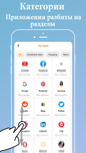 💾 Экономьте много места на своем телефоне с помощью нашего приложения, получая доступ ко многим сайтам социальных сетей, магазинам, новостям и мессенджерам, а также быстрый доступ к недавно использованным приложениям.