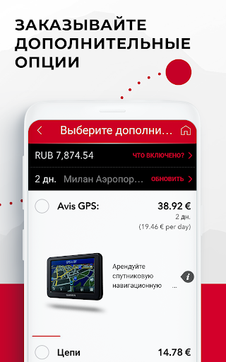 - Выбирайте дополнительное оборудование или услуги в поездке, например, детские кресла и GPS