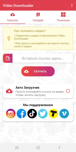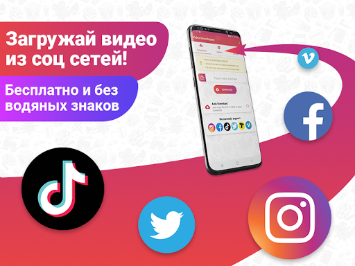 Загрузчик видео - скачивайте видео с Fb, Insta, Tik-Tok и других социальных сетей в HD качестве в одно нажатие.
