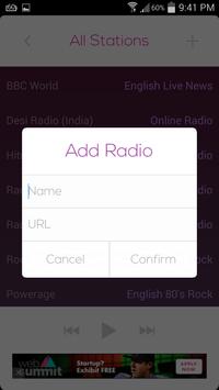 An user can also add his own choice of radio by entering the information of stations streaming link.