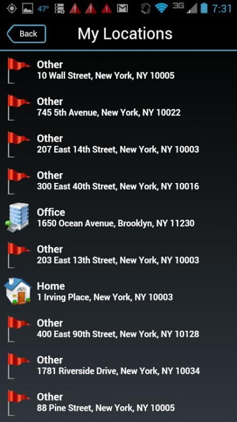 • GPS-основе, недавние адреса, используемые или аэропорт оговорки