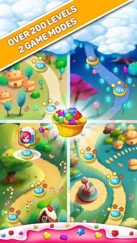 ★ You will have a chance to discover the challenging map containing 200 levels in candy island