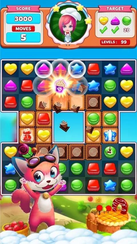 ★ Puzzle: Gathering enough candy deluxe and crafty candy to pass each single level. Sometimes, candy legend will appear and your mission is to smash them with a maximum of moves.