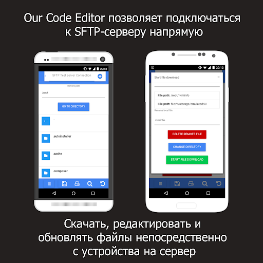 Скачать и редактировать файлы из многих источников (SFTP, Dropbox, Mediafire), полезного автозаполнения и многим темам выделить.