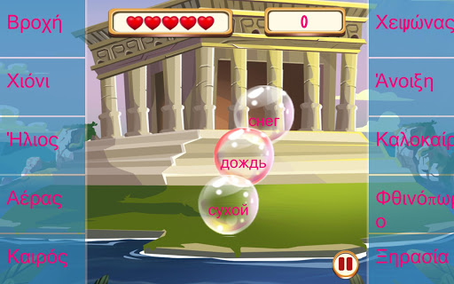В игру очень просто играть. Вы выбираете пузырёк, который плывёт наверх, а затем выбираете перевод, чтобы пузырёк лопнул. Вы можете прочесть слово в пузырьке или послушать, как его произносит носитель языка. В процессе вы выучите разнообразные греческие слова, написанные на греческом алфавите. О, а ещё звук, с которым лопаются пузырьки, очень приятный.