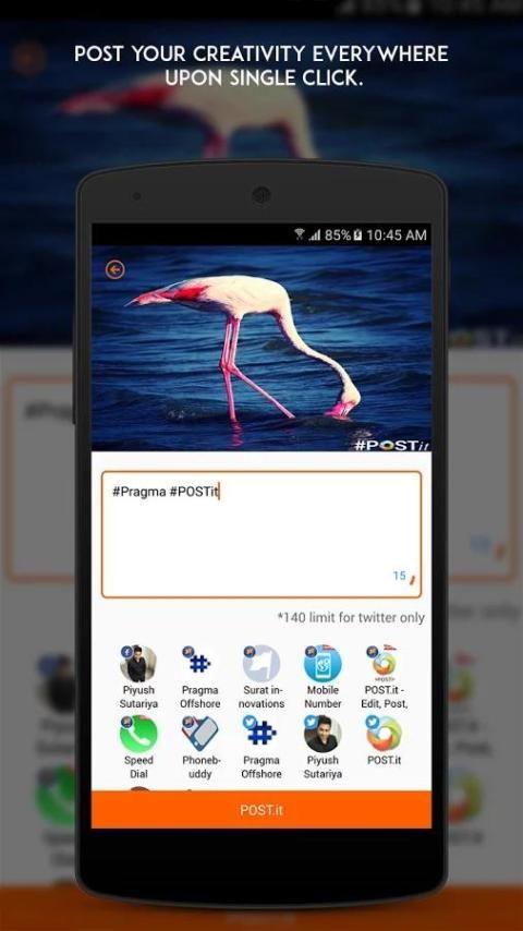 POST.it является непривычный и смарт-приложение социализация разработан с основным мотивом ослабления способности пользователя редактировать и обмениваться фотографиями на различных социальных сетях. Социальная сеть соединяет вас с вашими друзьями и близкими. Мы хотим, чтобы соединить все свои социальные сети через сообщения вы создавать и делиться.