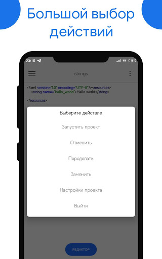 - Изменён дизайн редактора кода; Добавлены кнопки в экшен бар и название файла перенесено в менеджер файлов