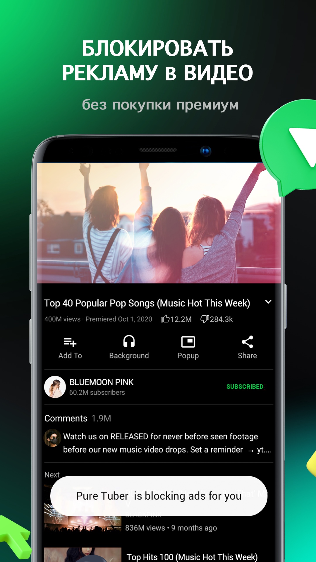 Установить Pure Tuber, чтобы пропускать видео-рекламу, наслаждаться плавным фоновым воспроизведением и всплывающим окном!