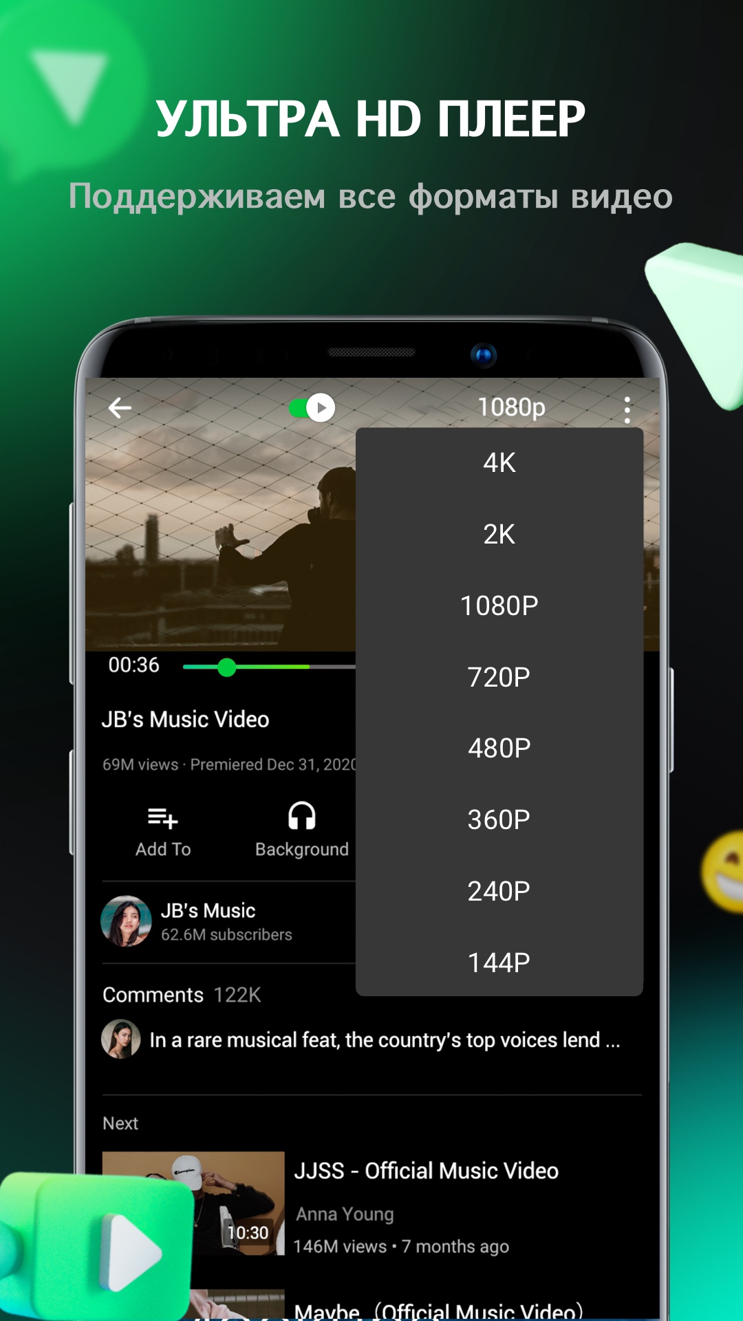 -может воспроизводить видео со всеми разрешениями от 144p до 8K, наслаждайтесь лучшим пользовательским интерфейсом.