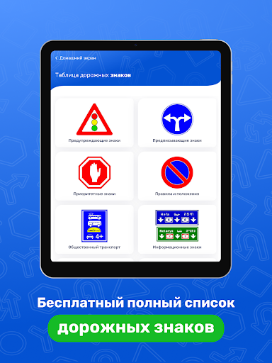 ✔️ Дорожные знаки – детальный список дорожных знаков с информацией о каждом из них и знаками, знание которых будет проверяться на экзамене.