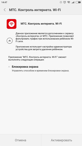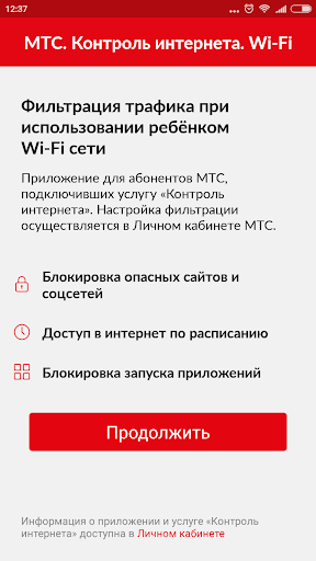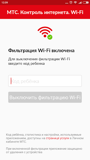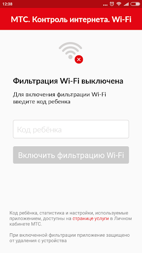«Контроль интернета. Ребенок. Wi-Fi» – приложение для абонентов МТС, у которых подключена услуга «Контроль интернета», позволяющая ограничивать доступ к нежелательным ресурсам при выходе через мобильные сети.