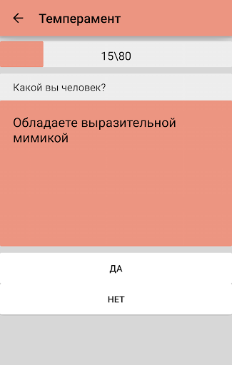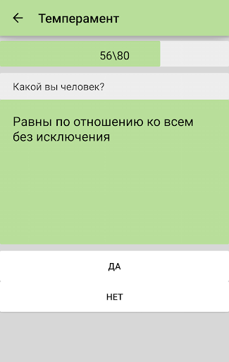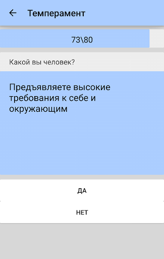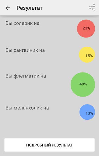 Чтобы узнать тип вашего темперамента нужно пройти небольшой психологический тест, который состоит из 80 вопросов. В результате вы сможете увидеть на сколько процентов относитесь к тому или иному типу.