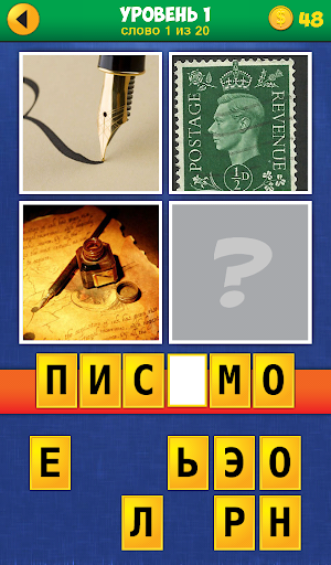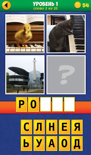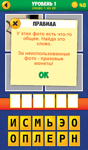 • Фото открываются по одному. Угадай слово открыв меньше картинок и заработай больше монет!