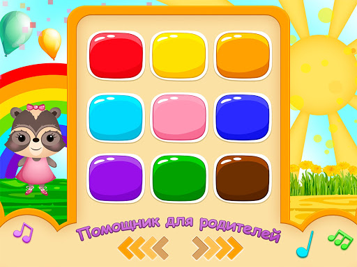 Игра с нотами. В этом режиме ребенок сможет наиграть свою авторскую мелодию. Кенди Енот вместе с нотками будут весело подтанцовывать и создадут непринужденную атмосферу.