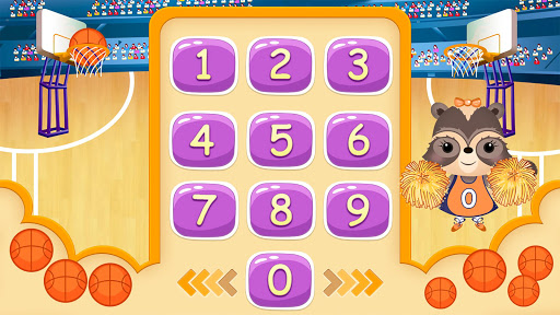 Учим цифры. Ребенок наглядно и интерактивно сможет изучить цифры от 0-9. В этом ребенку поможет Кенди Енот. Они вместе смогут окунуться в атмосферу баскетбола. С мячами и прыжками учить цифры веселее, поэтому ребенок не утомится.