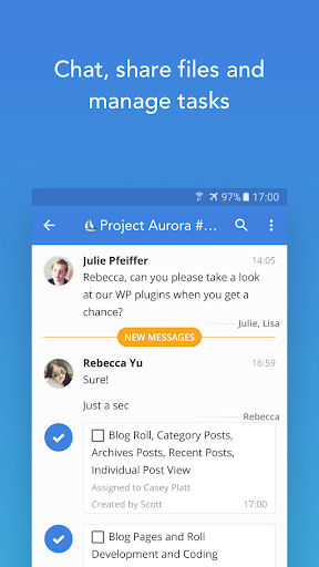 * легко создавать разговоры с вашими командами, состоящая из любой комбинациилюдей изнутри и за пределами организации;И как далеко они прочитали сообщения;