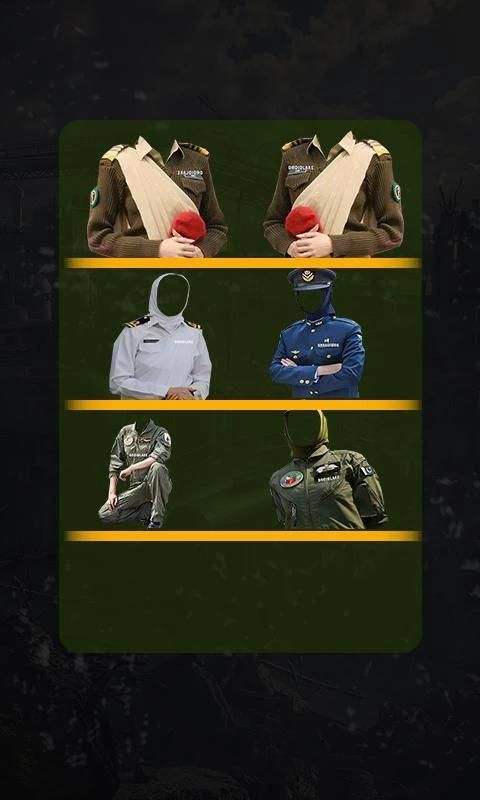 Пакистанская армия равномерного бесплатный редактор, как правило, бесплатно Android пак применения армии фото, которое обычно предоставляет HD Military фотографии коллекции платья. Есть многочисленные Pak армейских костюмов, предоставленные здесь, в лучшем применении военного костюма редактора, чтобы иметь возможность изменить свою фотографию, а также увеличить впечатление в своих лучших друзьях. Вы можете выбрать практически так эффектный костюм и установить это на собственной галерее фото. Вы можете также взять селе вместе с вашей камерой сотового телефона и выбрать конкретный Пакистан военного костюм вы хотите использовать. После попытки военного армии человек редактора фото костюма вы чувствуете для военного храбреца. Пакистанская армия равномерная редактор приложение имеет множество костюмов в различных цветовых сочетаний. Попробуйте все армейские костюмы и сделать ваши друзья возбуждают видеть вас в этом новом пакистанской армии костюме.