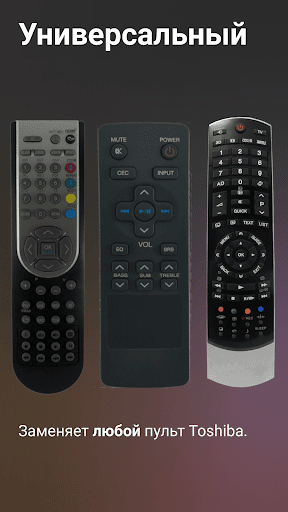 Remote Control for Toshiba TVs – это многофункциональное приложение, позволяющее легко управлять телевизором Toshiba и другими устройствами Toshiba с устройства Android. С помощью этого приложения для удаленного управления вы можете превратить свой телефон или планшет в виртуальный пульт, предоставляя вам возможность переключать каналы, регулировать громкость и получать доступ ко всем вашим любимым приложениям и потоковым службам.