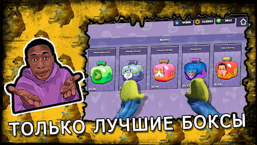 Проходи мини игры и заробатывай гемы Туалетный Монстр Скибиди бабл клас Talking Juan Проклятие мудрого дерева Sticker Maker Rainbow Friends для открытия сундуков и стар боксов троллфейс с которых ты получишь самые крутые мемы . Только в игре Туалетный Монстр Скибиди бабл клас - Бокс Симулятор Talking Juan Rainbow Friends можно прокачать всех персонажей бабл старс для увеличения своего рейтинга в троллфейс .