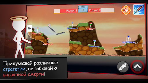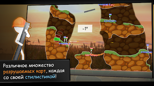 В игре присутствует БОЛЕЕ 25 видов уникального оружия, каждое из которых обладает своими особенностями! Например, светошумовая граната взрывается через заданное игроком время и ослепляет ближайших стикманов, заставляя их пропустить свой ход, а розовый револьвер хоть и кажется маленьким, но способен за ход взорвать огромную часть карты!