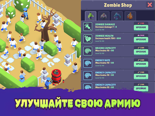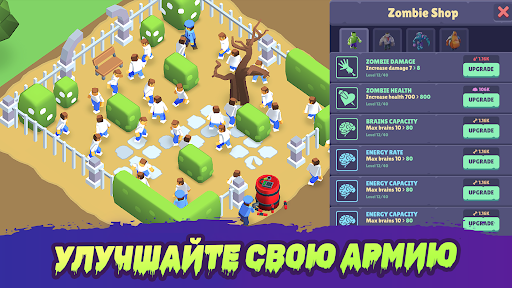 - Используйте собранные материалы, чтобы сделать своих зомби сильнее и быстрее;