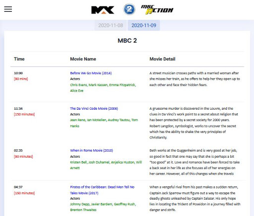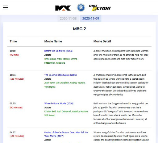 MBC TV Guide for MBC 2, MBC 4, MBC MAX, MBC Action and US Box office trailers