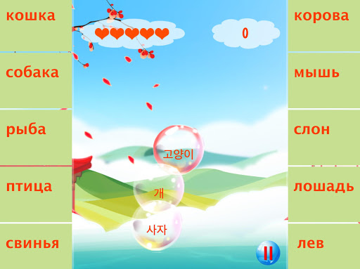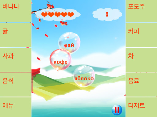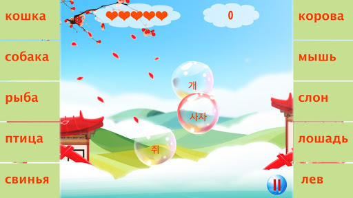 Лопайте пузырьки со словами и фразами на корейском языке и увеличивайте ваш словарный запас. Слушайте произношение слов. Лопайте пузырьки до того, как они улетят.