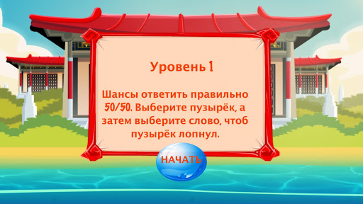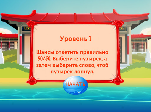 Вместо того, чтоб заучивать список слов, просто начните играть. Первый уровень очень простой - у вас есть 50% угадать правильный ответ, когда вы лопаете пузырьки.
