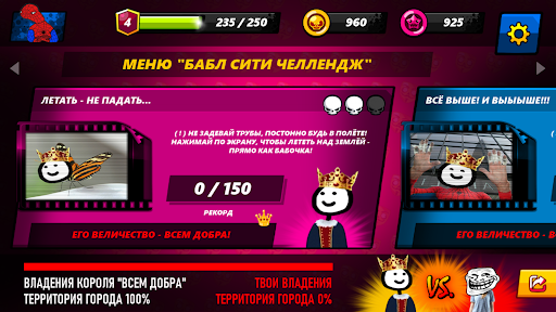 На протяжении долгих лет в "Бабл Сити" правит его Величество "Всем Добра!". Твоя задача - убрать короля с пьедестала! Сделай вызов королю, освободи "Бабл Сити" от тирании доброго и невероятно спортивного короля! Вся надежда только на тебя и твоих бойцов!