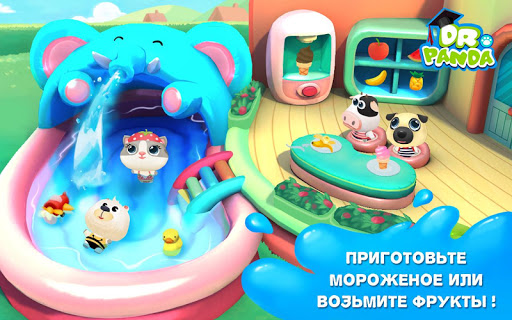 Брызгайтесь и играйте с пятью милыми зверятами в плавательном бассейне Dr. Panda! Здесь три больших бассейна, в которые можно погрузиться, и пять животных, нуждающихся в заботе — так что удовольствие будет долгим. Поиграйте в одевание в раздевалке, перекусите у бассейна, скатитесь с водяной горки или спрыгните с борта пиратского корабля в поисках спрятанного сокровища.