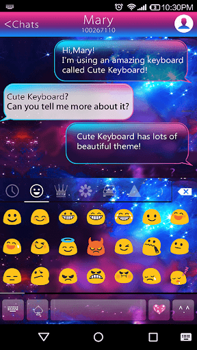 ธีมกาแล็กซี่สีสำหรับอิโมจิอิโมติคอนและแป้นพิมพ์รอยยิ้มโปรดติดตั้งแป้นพิมพ์อิโมจิจาก