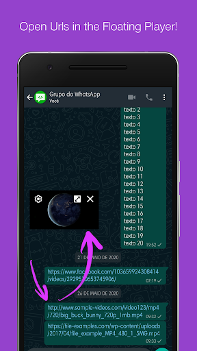 - The Floating Player can play any video or audio url compatible with it, that is, touch the media link and choose to open it in the Floating Player.