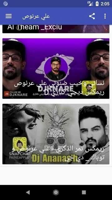 This program offers you all the songs of the artist Ali Arnous Nisani and Kheib Dannouni exclusive without Net